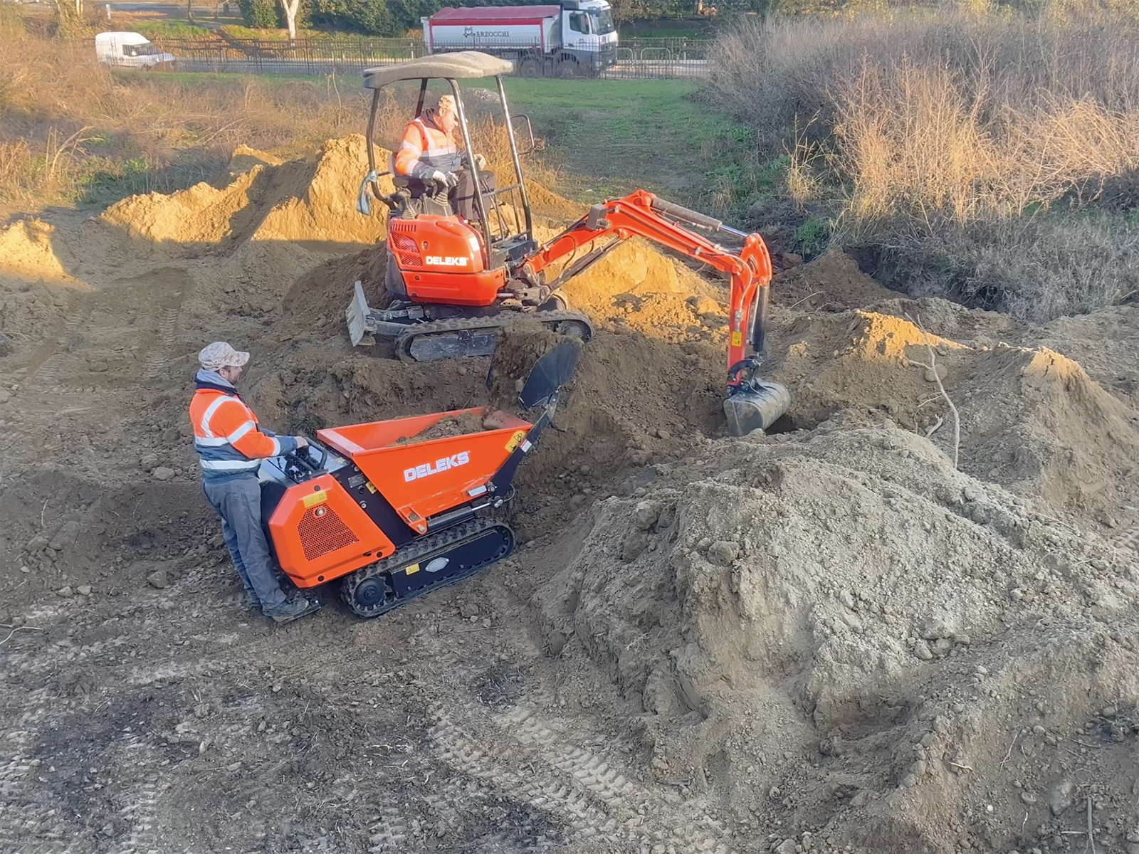 DELEKS® M8000-KUBOTA Self-loading tracked minidumper, high dump, hydrostatic transmission, operator platform, Kubota engine, electric start.