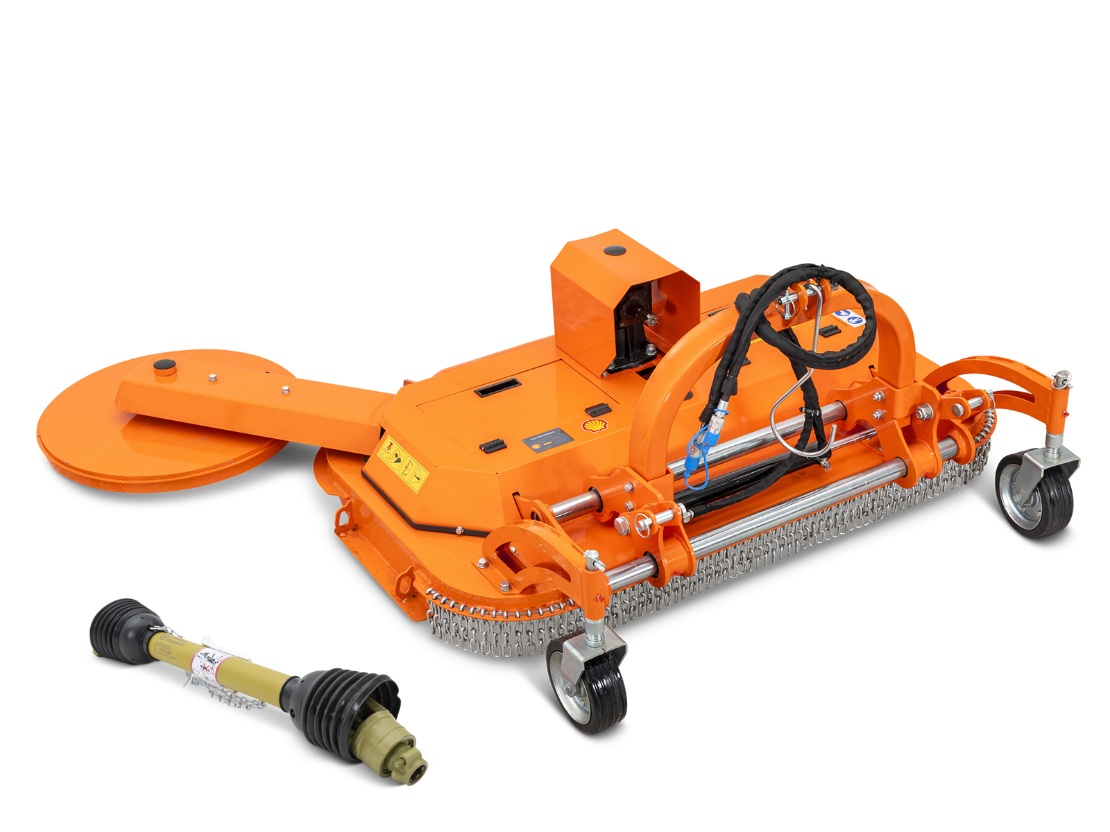 CLOSEDELEKS® DM150-INTERFILA Finishing mower for tractor, 8 blades, hydraulic side shift and 60cm inter-row disc, Cardan shaft with Free wheel integrated.