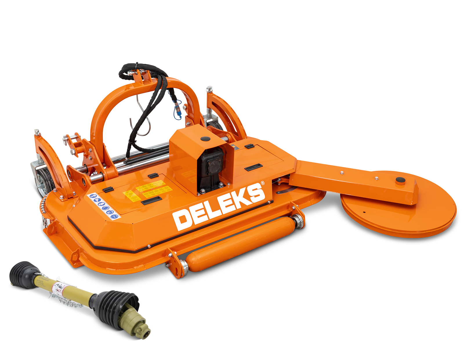 DELEKS® DM150-INTERFILA Finishing mower for tractor, 8 blades, hydraulic side shift and 60cm inter-row disc, Cardan shaft with Free wheel integrated.