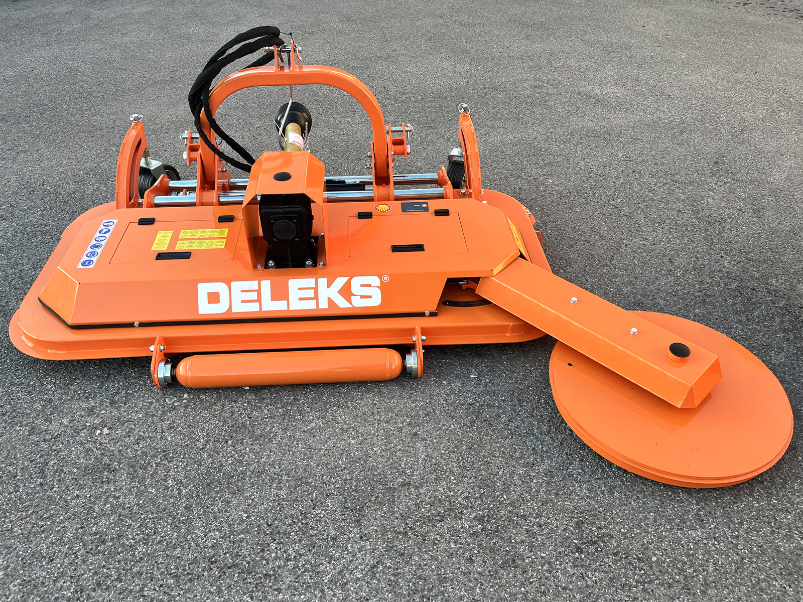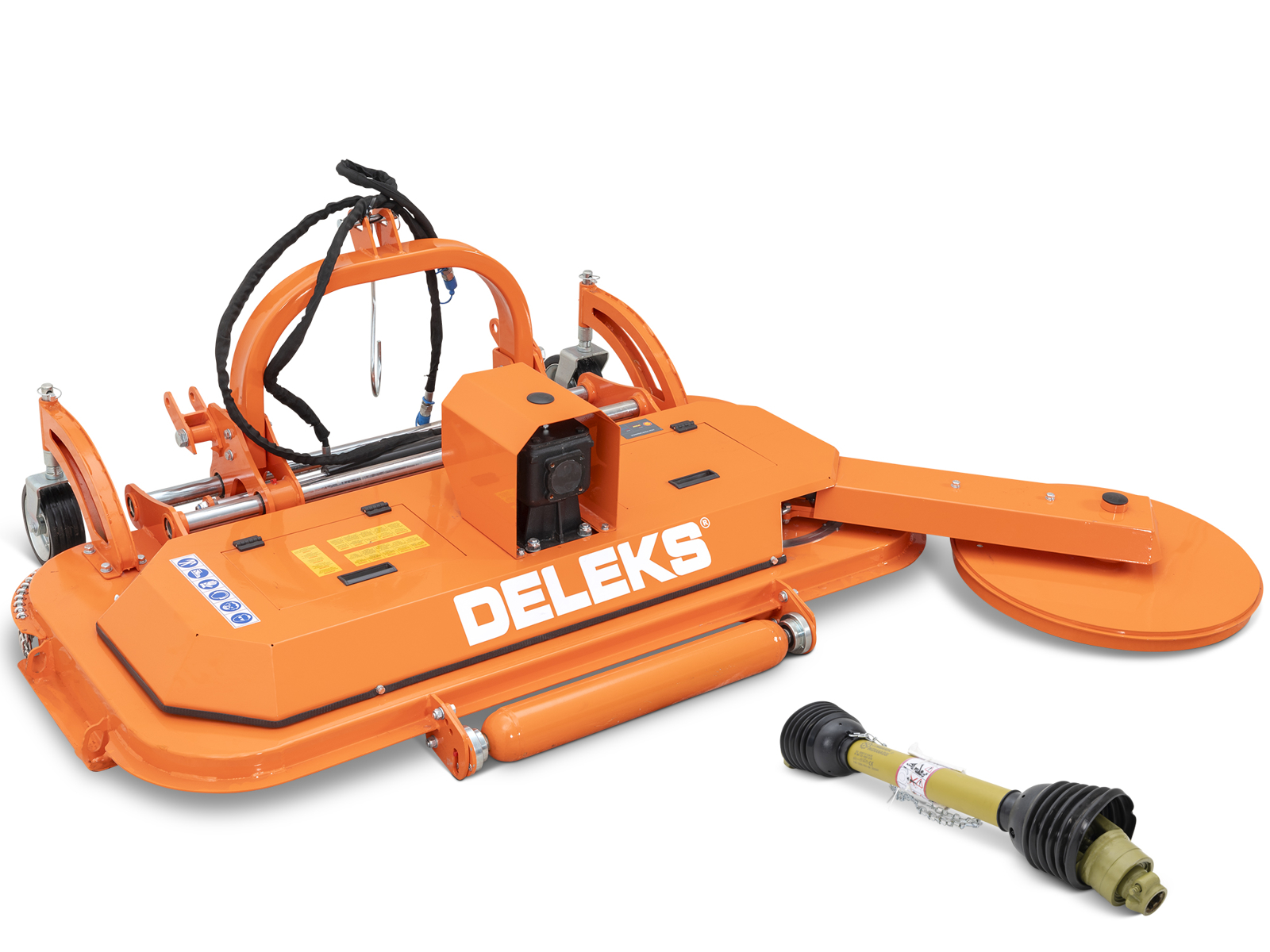 DELEKS® DM180-INTERFILA Finishing mower for tractor, 8 blades, hydraulic side shift and 60cm inter-row disc, Cardan shaft with Free wheel integrated.