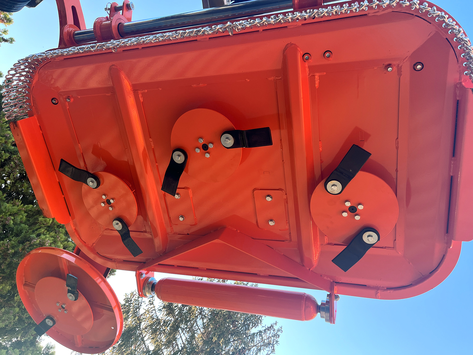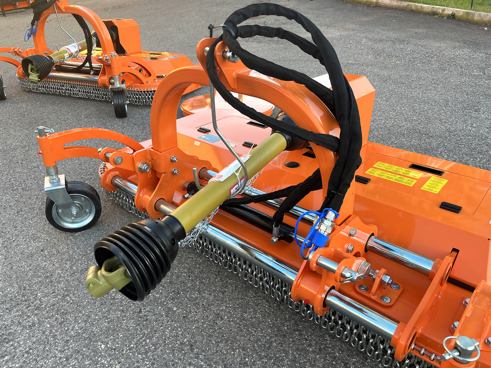 CLOSEDELEKS® DM180-INTERFILA Finishing mower for tractor, 8 blades, hydraulic side shift and 60cm inter-row disc, Cardan shaft with Free wheel integrated.