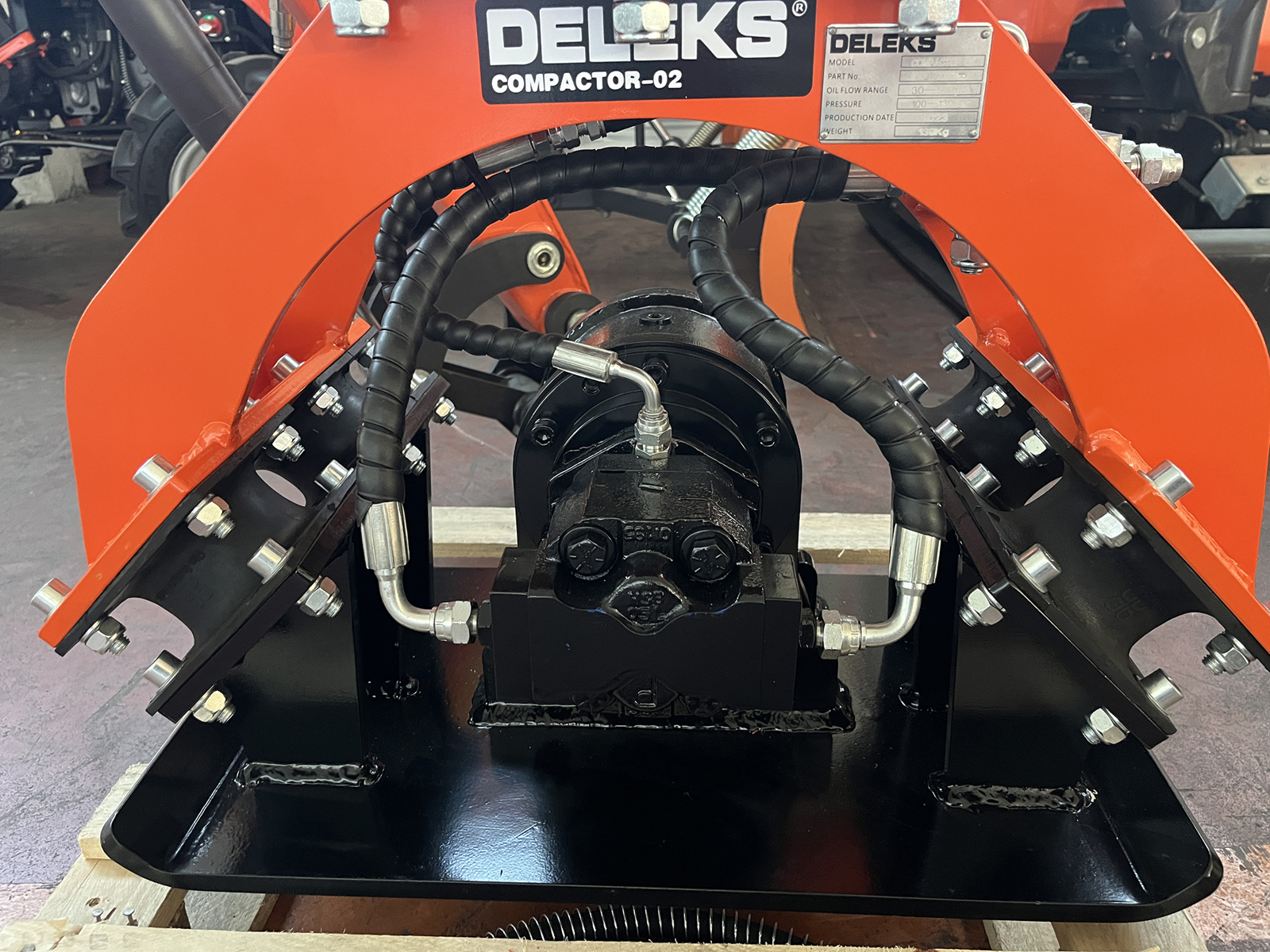 DELEKS® COMPACTOR-02 vibrating plate compactor. It is very easy to instal and easy to use, and it’s suitable for both a skidsteer or a mini excavator, from 1.0 t to 2.5 t.