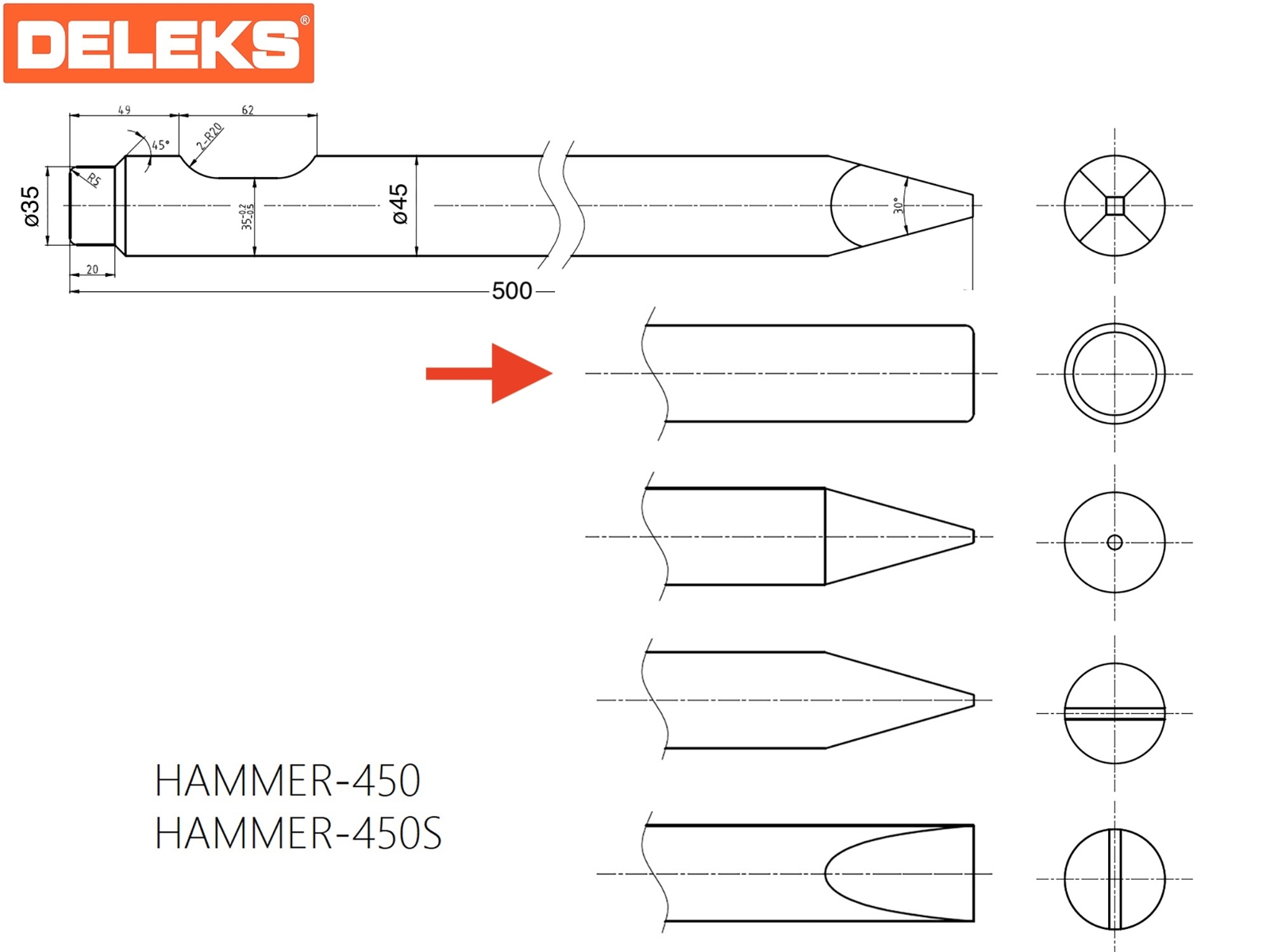 CLOSEDELEKS® Blunt chisel for hydraulic hammer.