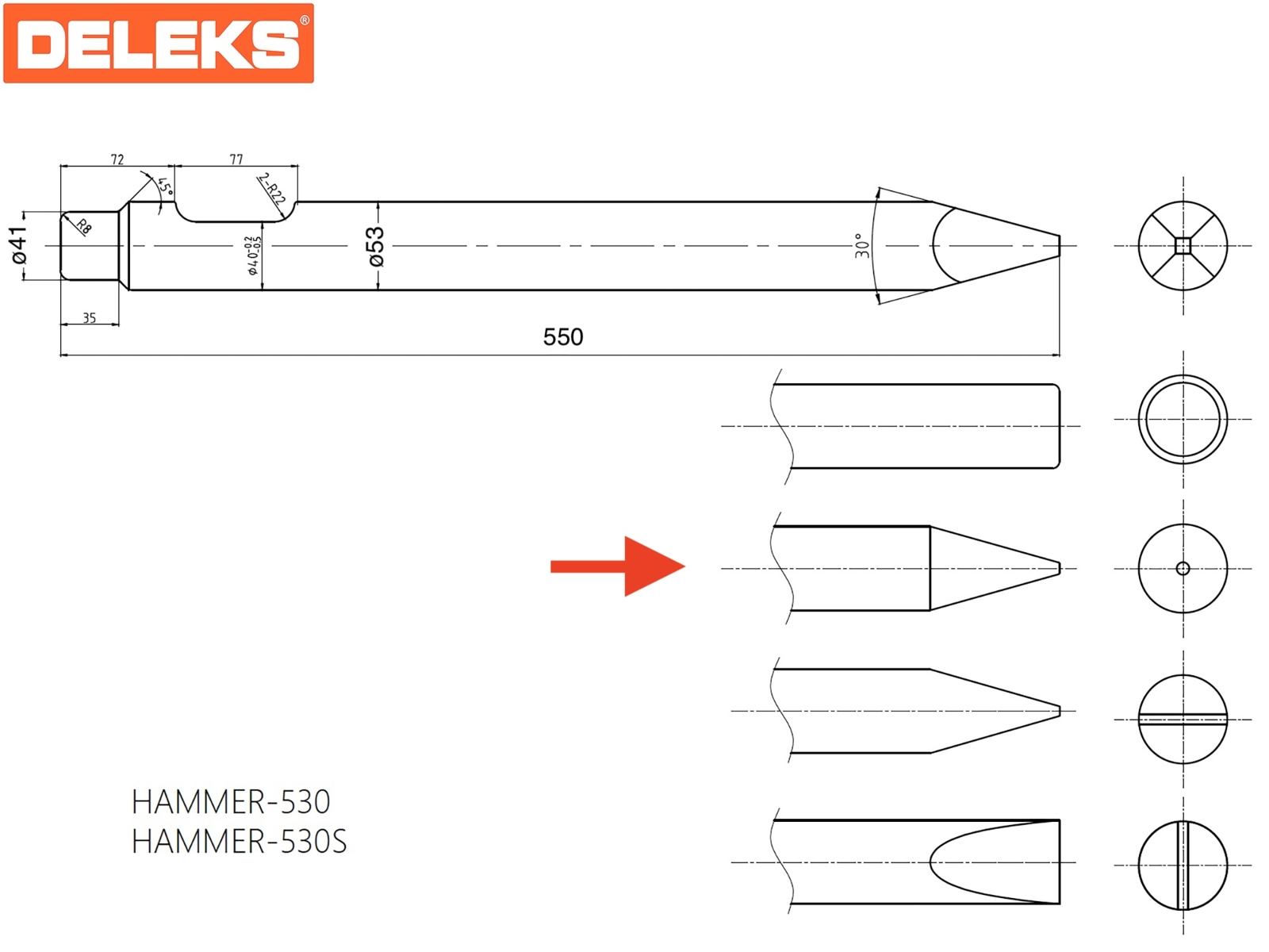CLOSEDELEKS® Conical chisel for hydraulic hammer.