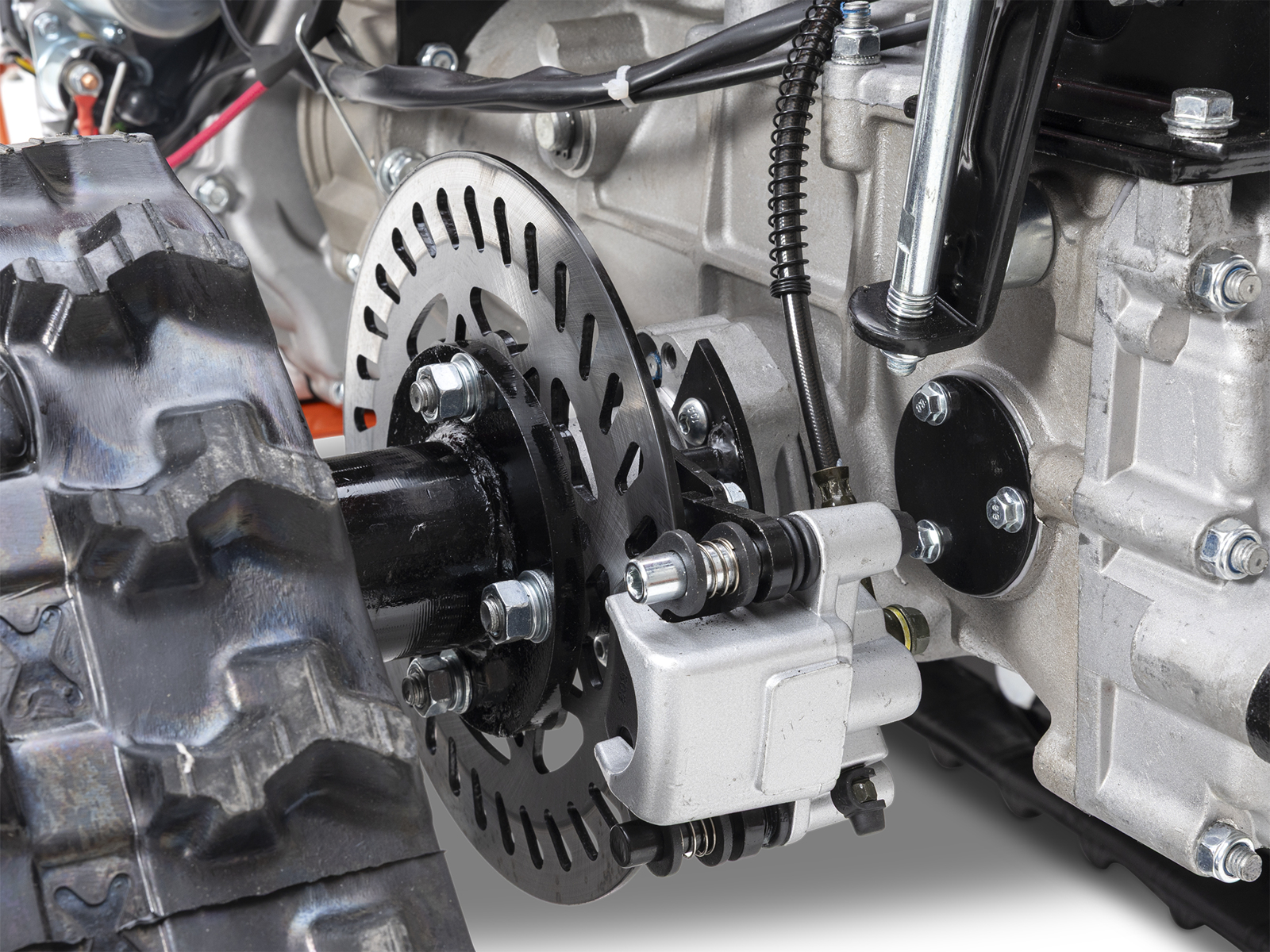 Differential and differential lock: the differential allows greater manoeuvrability, the differential lock, engaged via the lever on the handlebar, allows greater grip on the ground even on slopes and straight-line travel without difficulty.