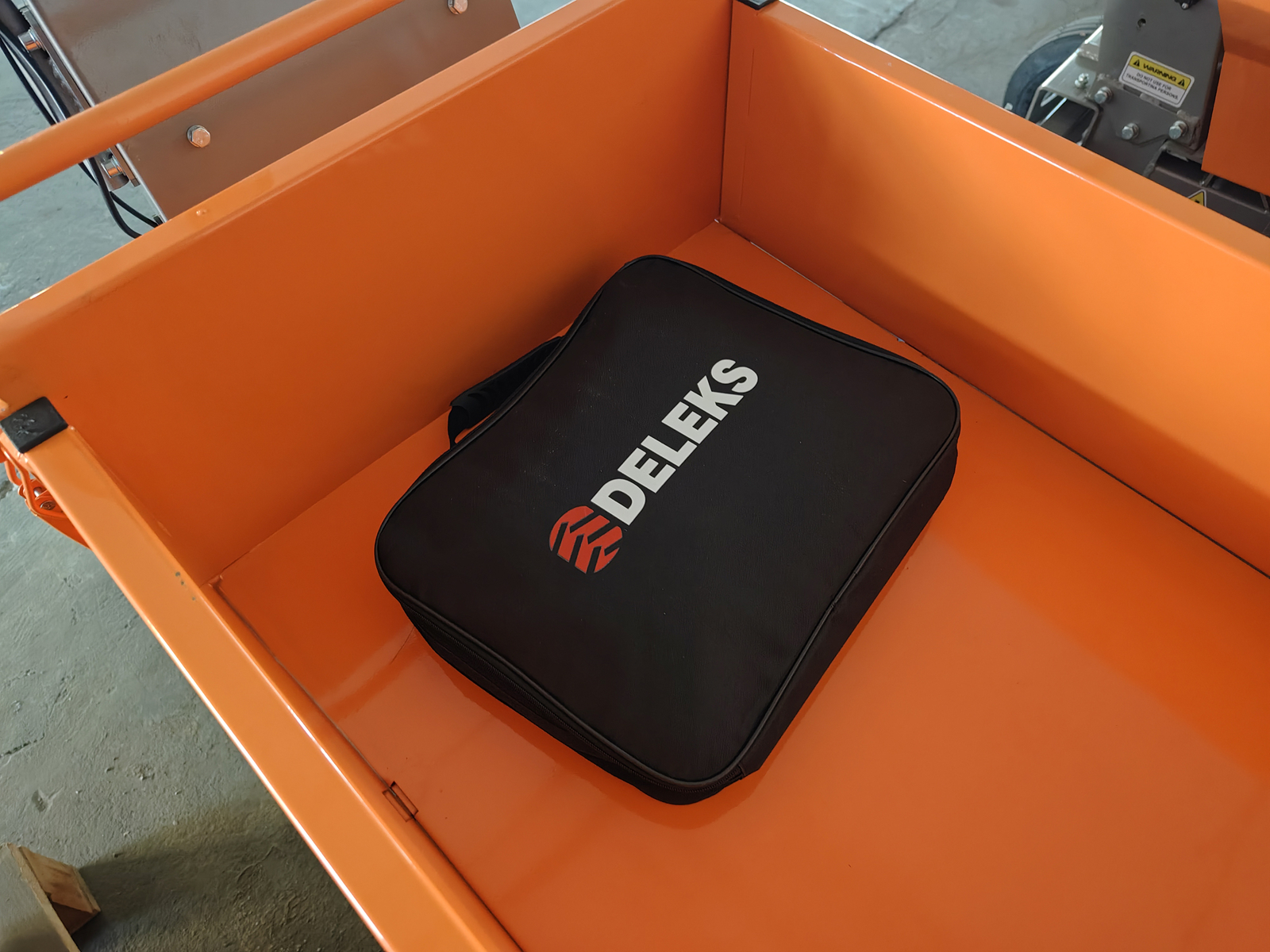 DELEKS® XE500HFL Lithium Electric Dumper with 1000W 48V electric motor, removable 48V 60Ah lithium battery, rectangular steel body with extendable side panels and hydraulic tipping.
