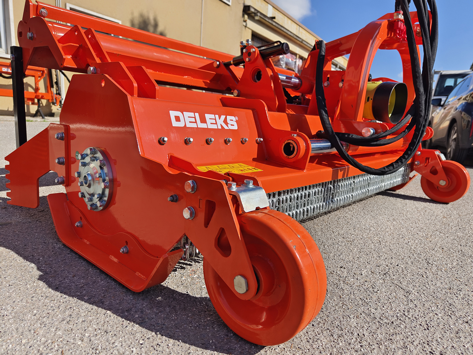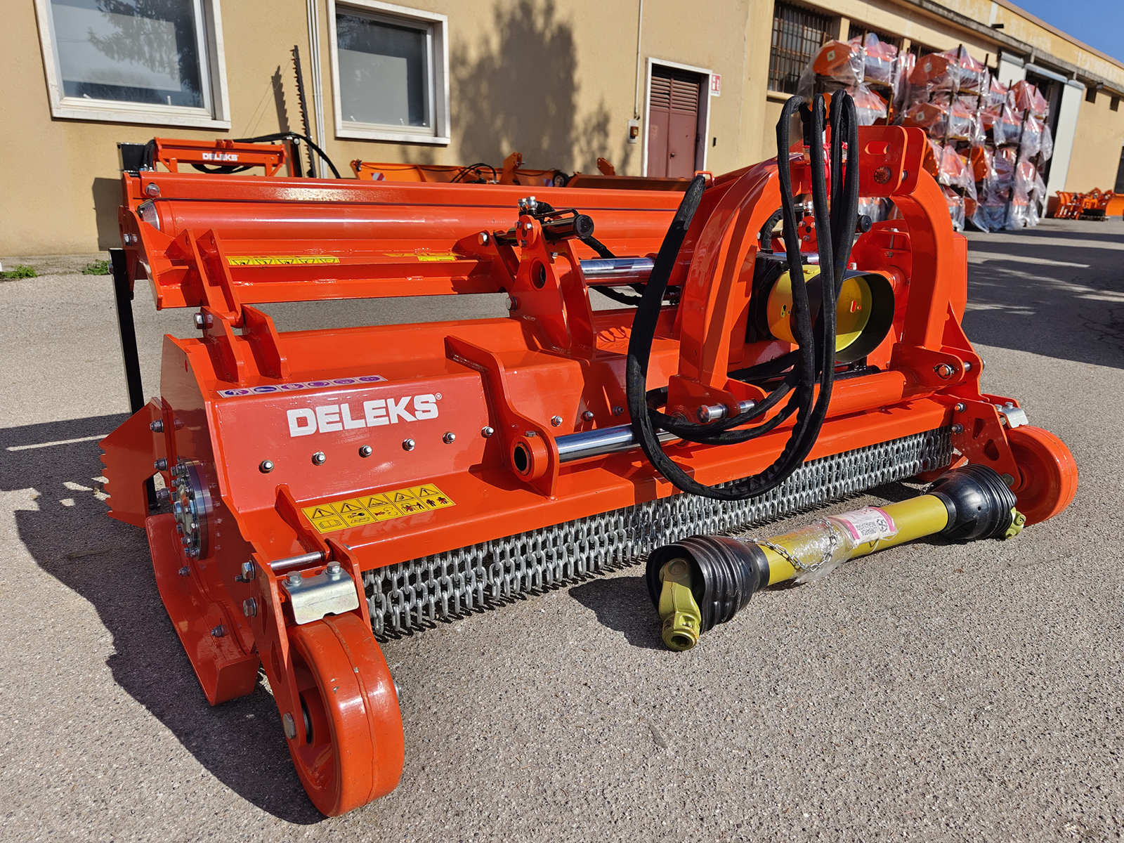 DELEKS® GORILLA-180 heavy-duty series shredder ideal for shredding vineyard, orchard, olive grove and woody material up to Ø 15 cm. Hydraulic drive and cardan shaft with safety bolt.