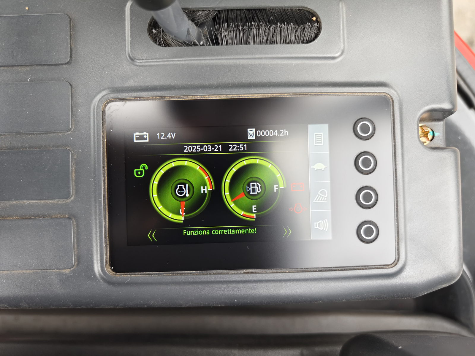 Standard equipment: Kubota D902 engine, swing boom, extendable undercarriage, two-speed travel, 43 cm bucket, front blade, auxiliary hydraulic circuit (for auger or breaker), panoramic 360° canopy, Display LCD in English, three original Kubota filters (air, oil, fuel), toolbox.