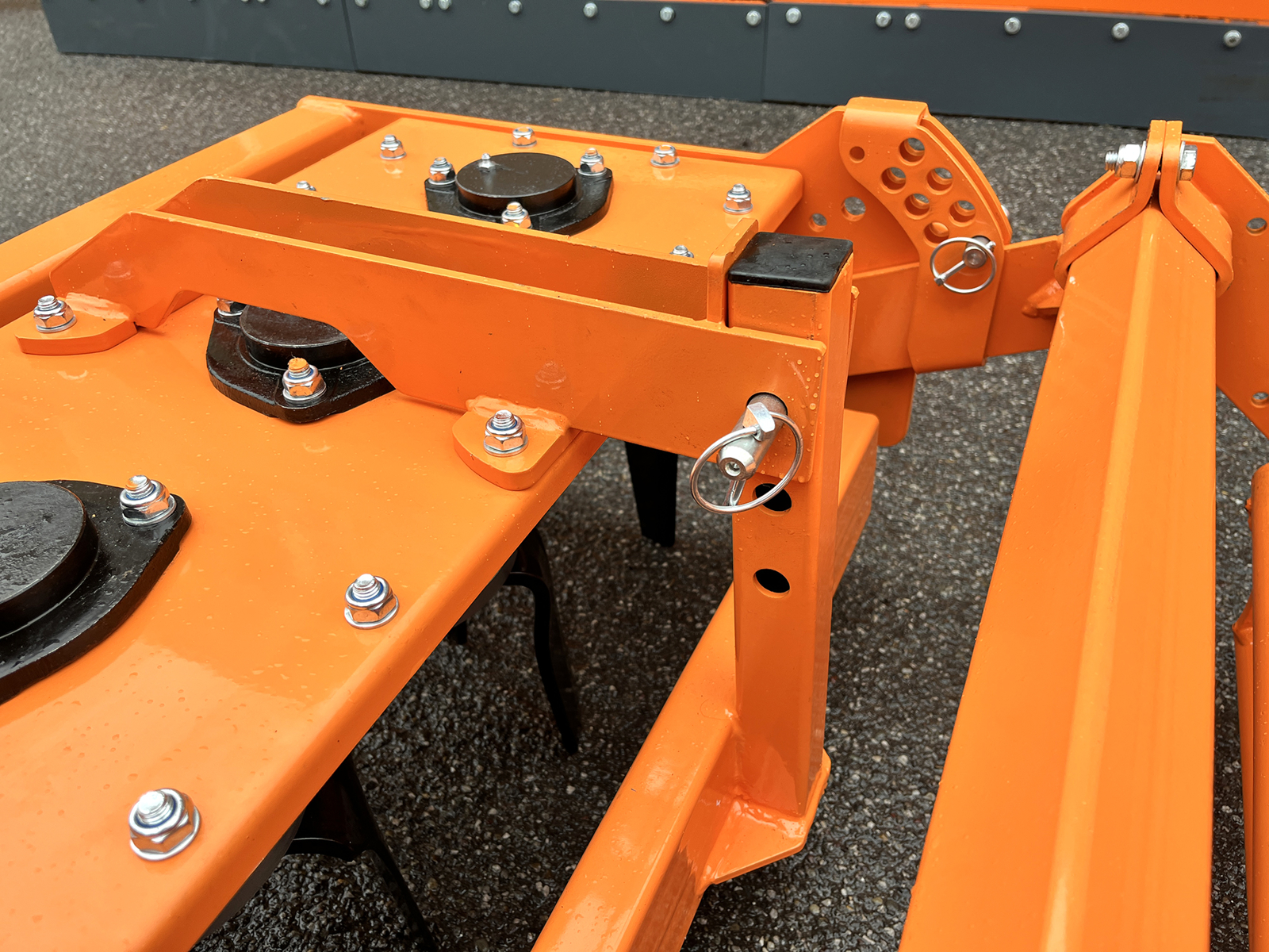 The KR model harrow has been designed for small farms and for tilling soil in specialized cultivations such as market gardening and viticulture. The special attention given to its overall dimensions and lightness makes it an ideal implement for low HP tractors. The special design of the blades allows the soil to be broken up with considerable economy in tractor power use.