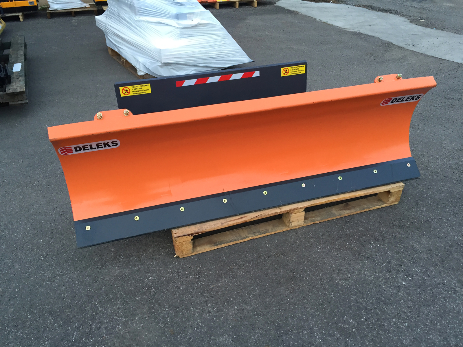 DELEKS® lightweight, agile snowplow for skid steer loaders up to 1.8 ton. Compatible with all common brands e.g Bobcat, JCB, Caterpillar, Case, etc. Conforms to the EC Machinery Directive. 2 years guarantee.