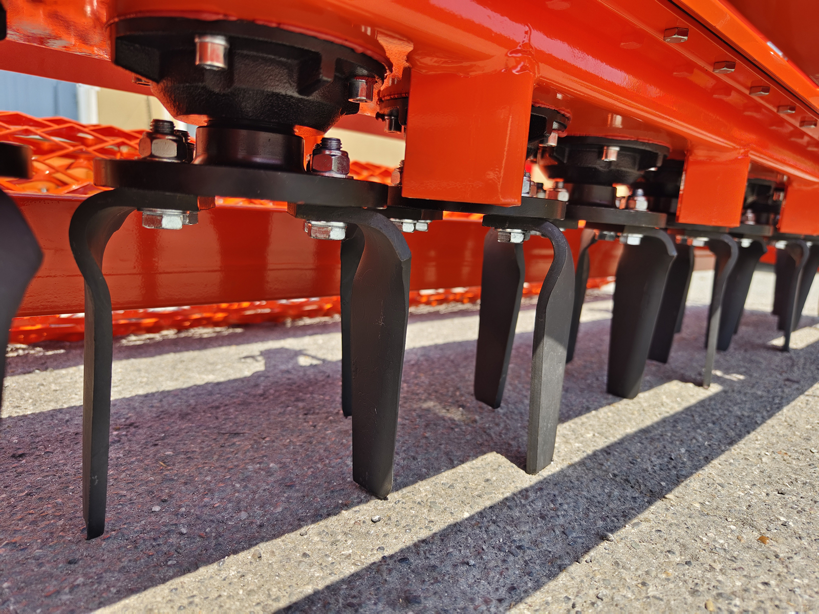 The KR model harrow has been designed for small farms and for tilling soil in specialized cultivations such as market gardening and viticulture. The special attention given to its overall dimensions and lightness makes it an ideal implement for low HP tractors. The special design of the blades allows the soil to be broken up with considerable economy in tractor power use.