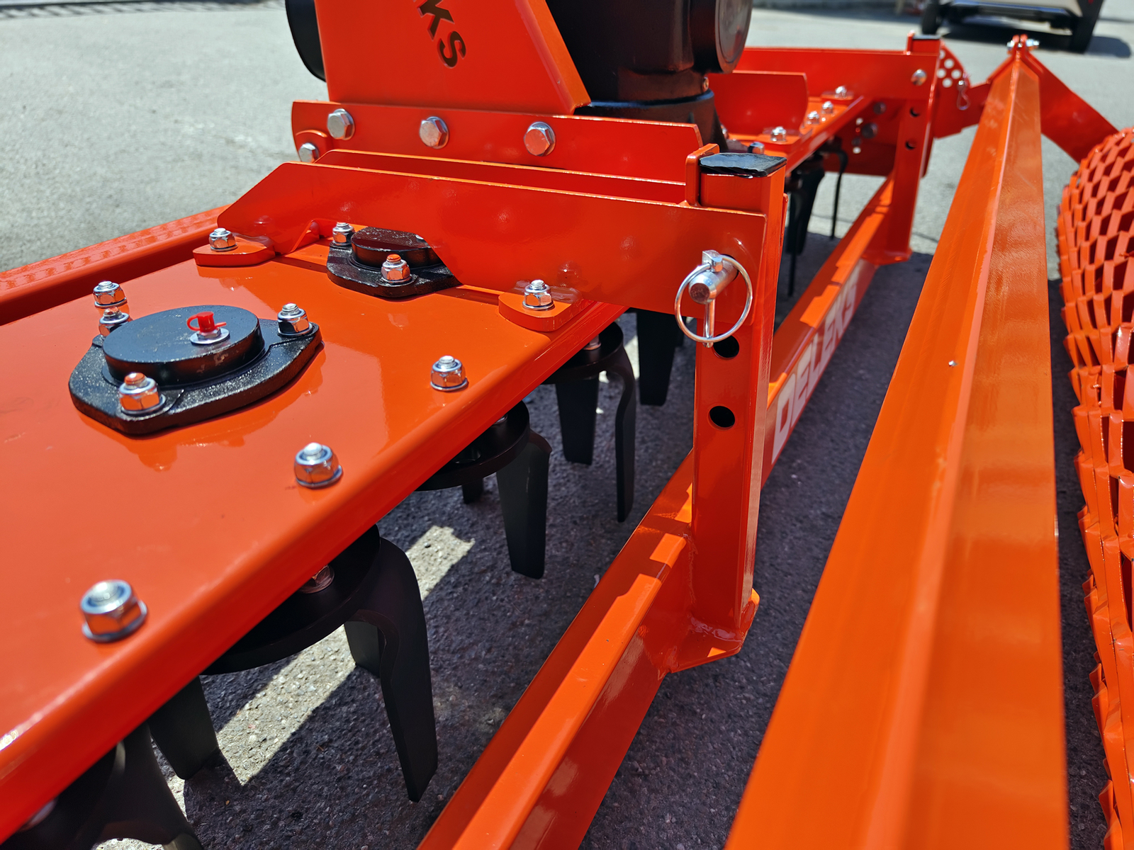 DELEKS® Power Harrow 165cm for tractors from 22 to 52 kW (30-70 HP), equipped with standard rear net roller (grit roller available as an optional) and single speed gearbox for P.T.O. 540 r.p.m.