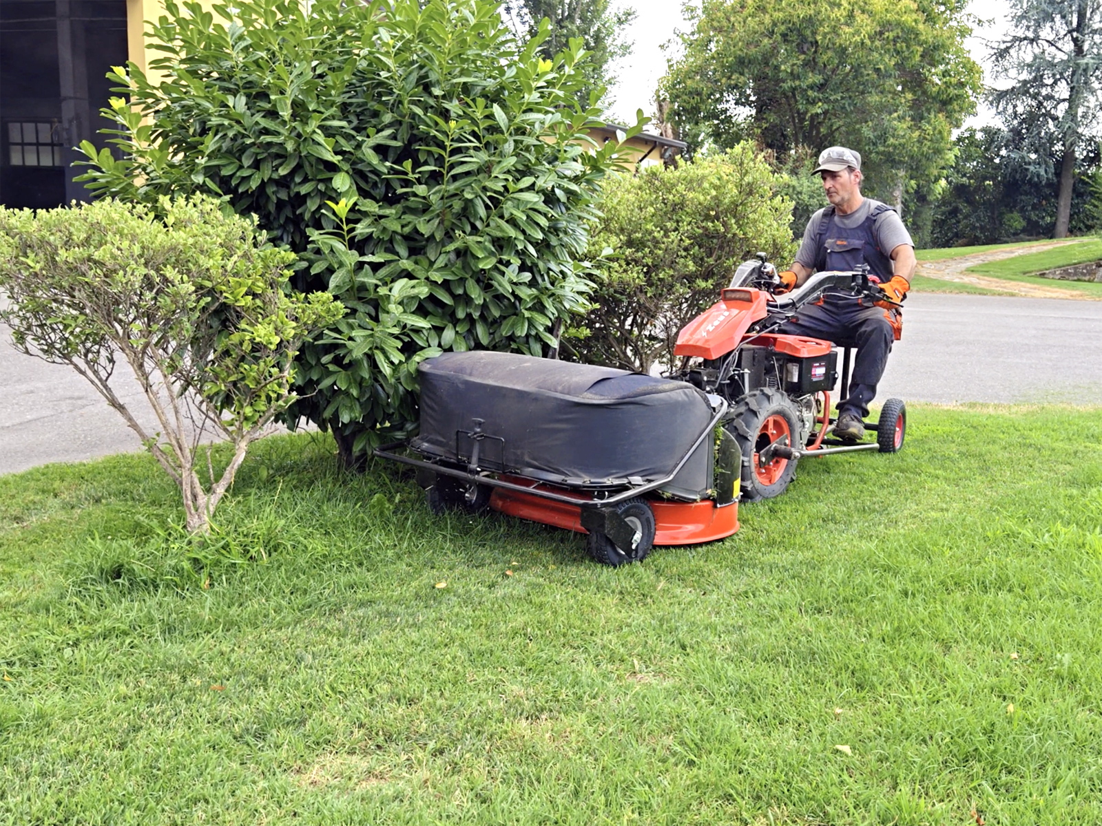 CLOSEDELEKS® RM100 Rotary lawn mower with collector, male quick hitch included. Compatible with BCS, Ferrari, and Pasquali walking tractors.