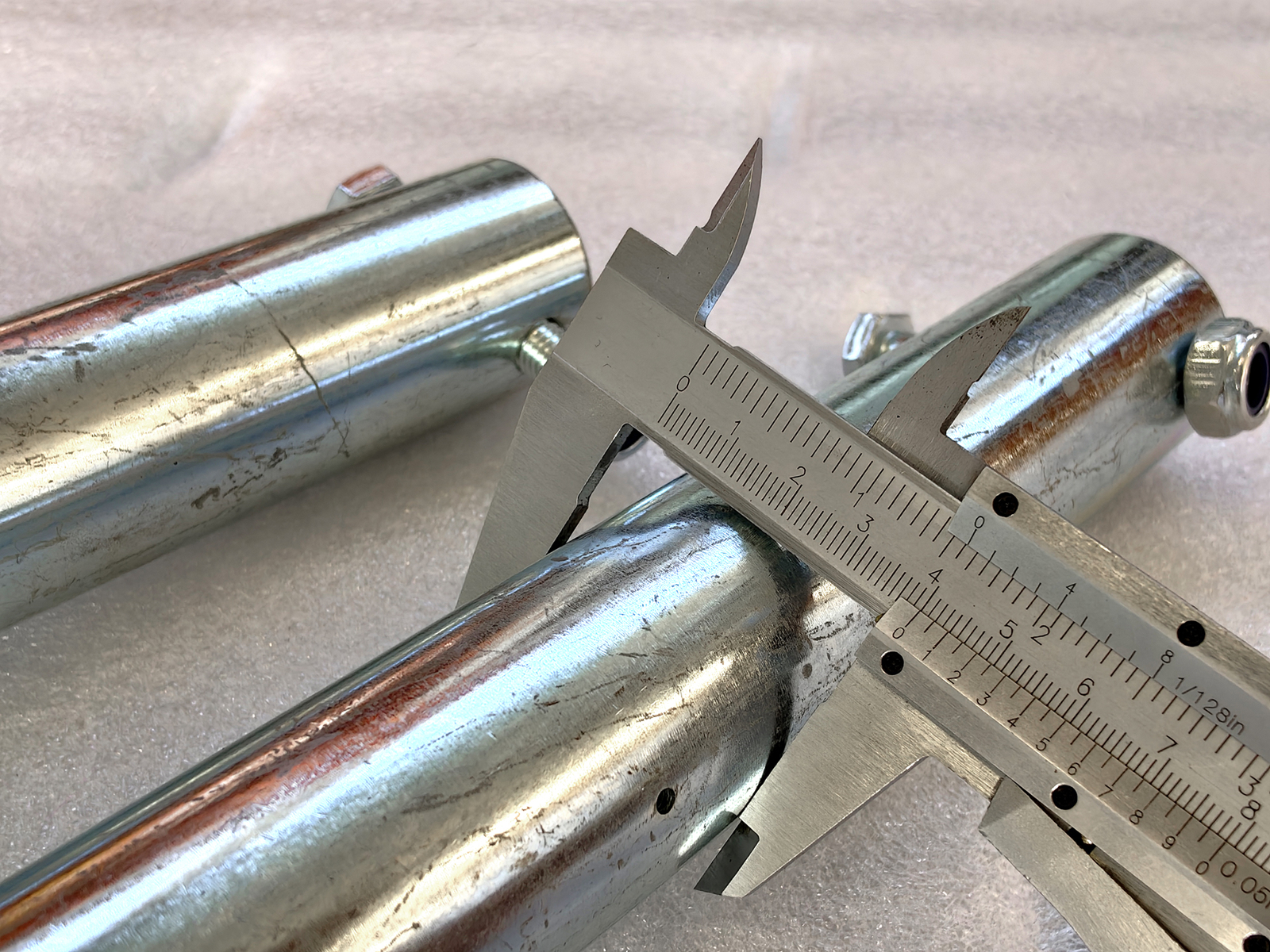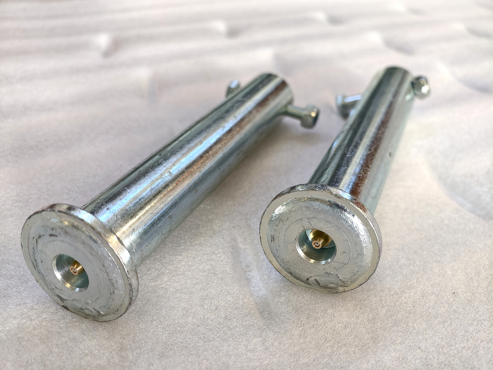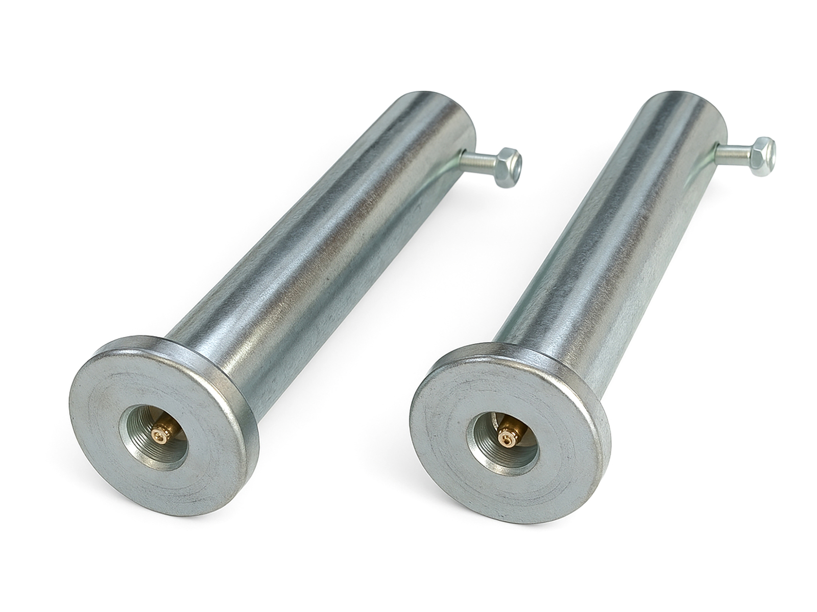 Pair of ø40 mm pins for mini excavator arm with S380 hitch, designed for the kinematic linkage of attachments such as buckets, rippers, rakes, augers and other compatible tools. The pins are manufactured through precision machining from high-strength steel, with ground surfaces to ensure concentricity, uniform finish and reduced friction at rotation points.