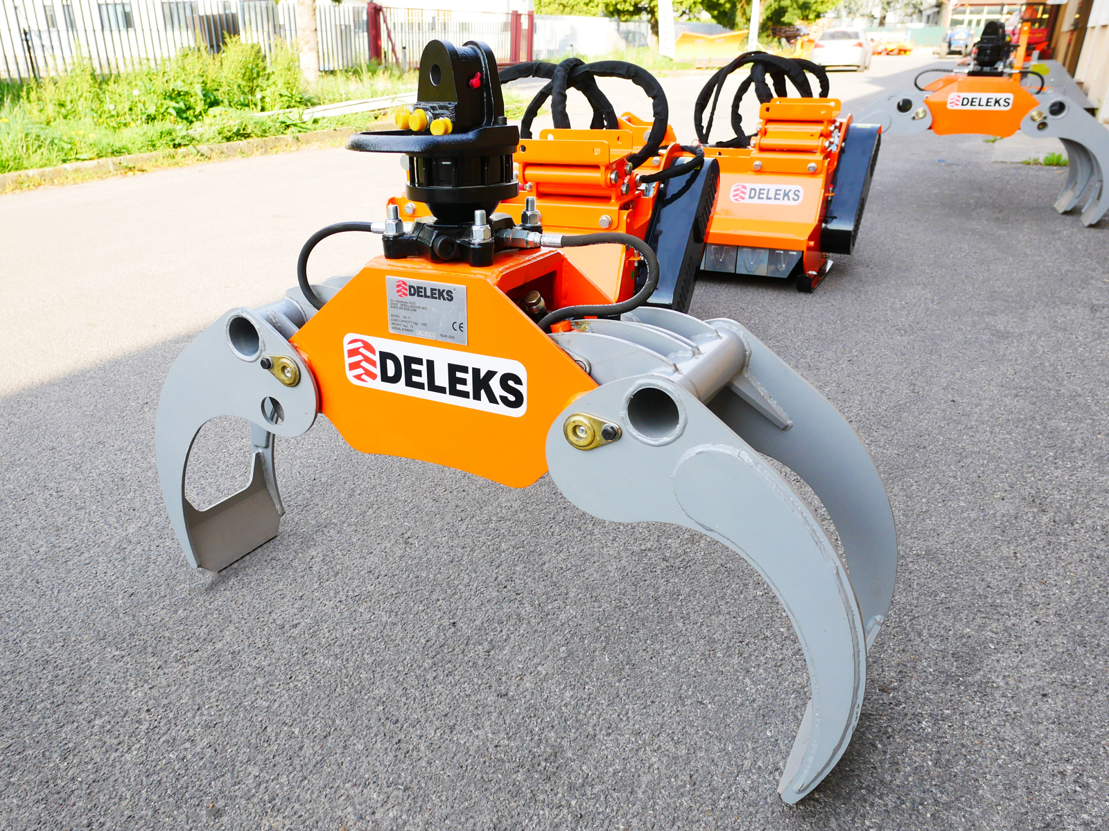 CLOSELog Grapple DELEKS® DK-11C + Flanged Lombarda Ingranaggi Rotator for Mini Diggers and Forest Cranes 1.8 – 3.5 Ton