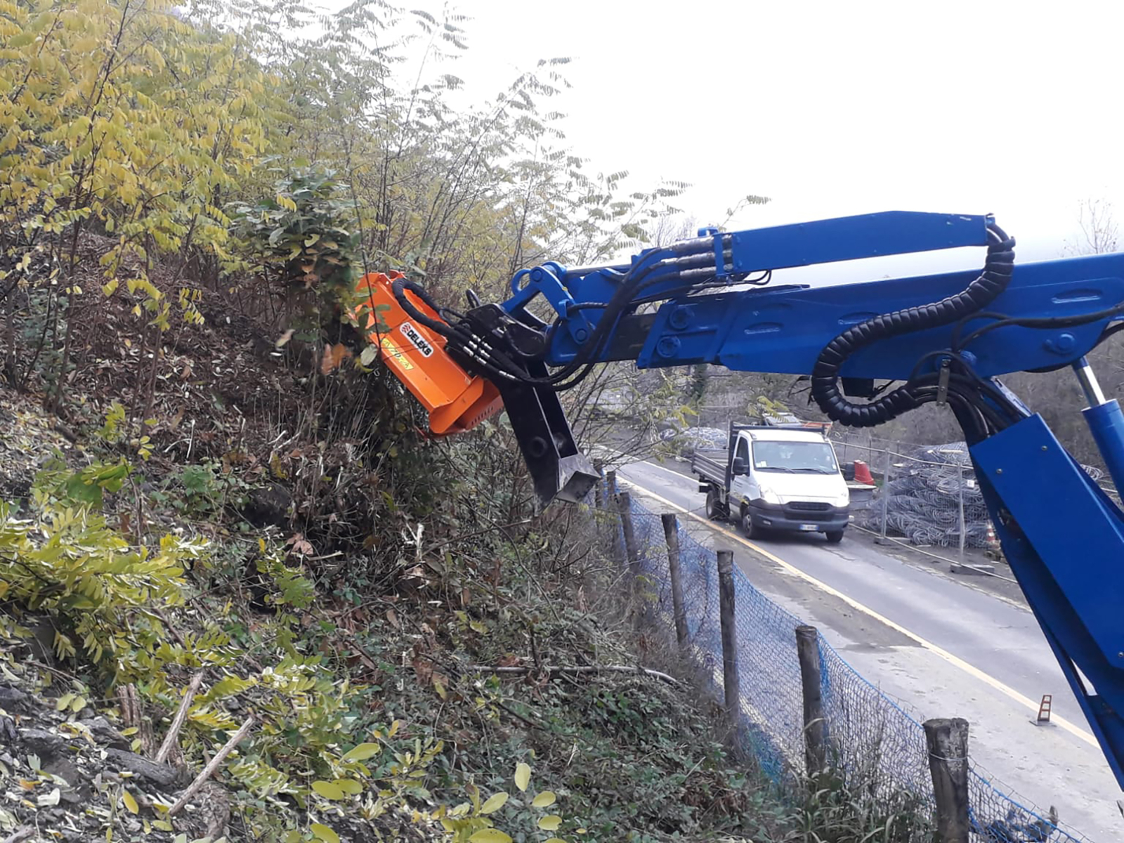 Hydraulic mulcher, brush-cutter for brambles, bushes, ditches, banks, embankments, branches. Suitable for cutting grass, trees and shrubs up to 5cm.