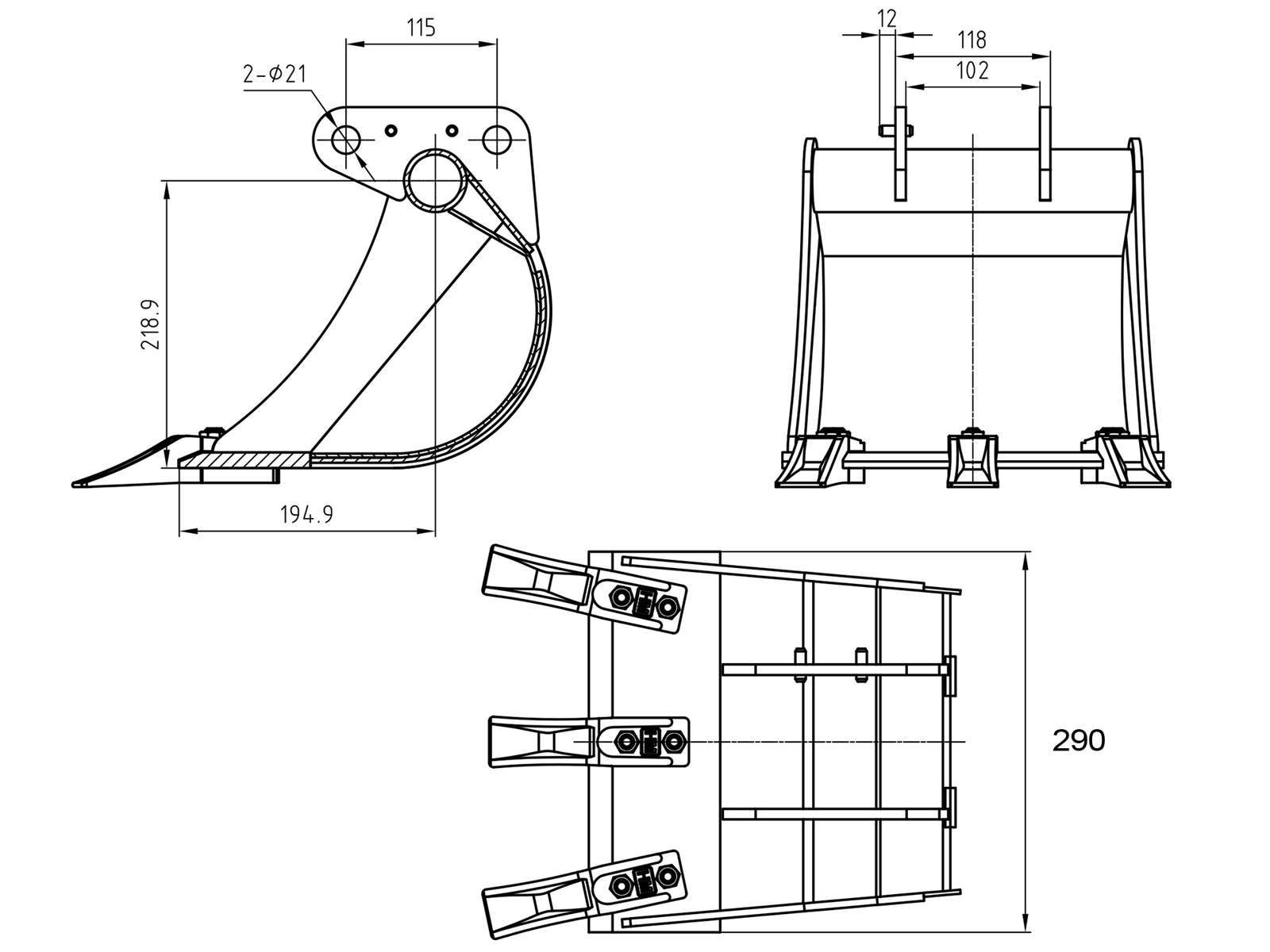 | Bucket Width | 290.0 mm | 11.5 in |