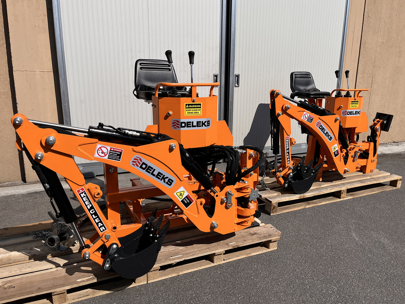 Mini backhoe for universal compact tractors - DELEKS® DRS-1000T - 358 kg - Side shift frame with manual locking - Oil system.