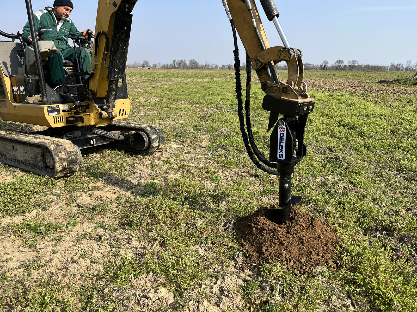 The DELEKS® GRHD-250 hydraulic earth drill / rotator is suitable on small excavators, wheel loaders, farm loaders or tractors with front loaders.