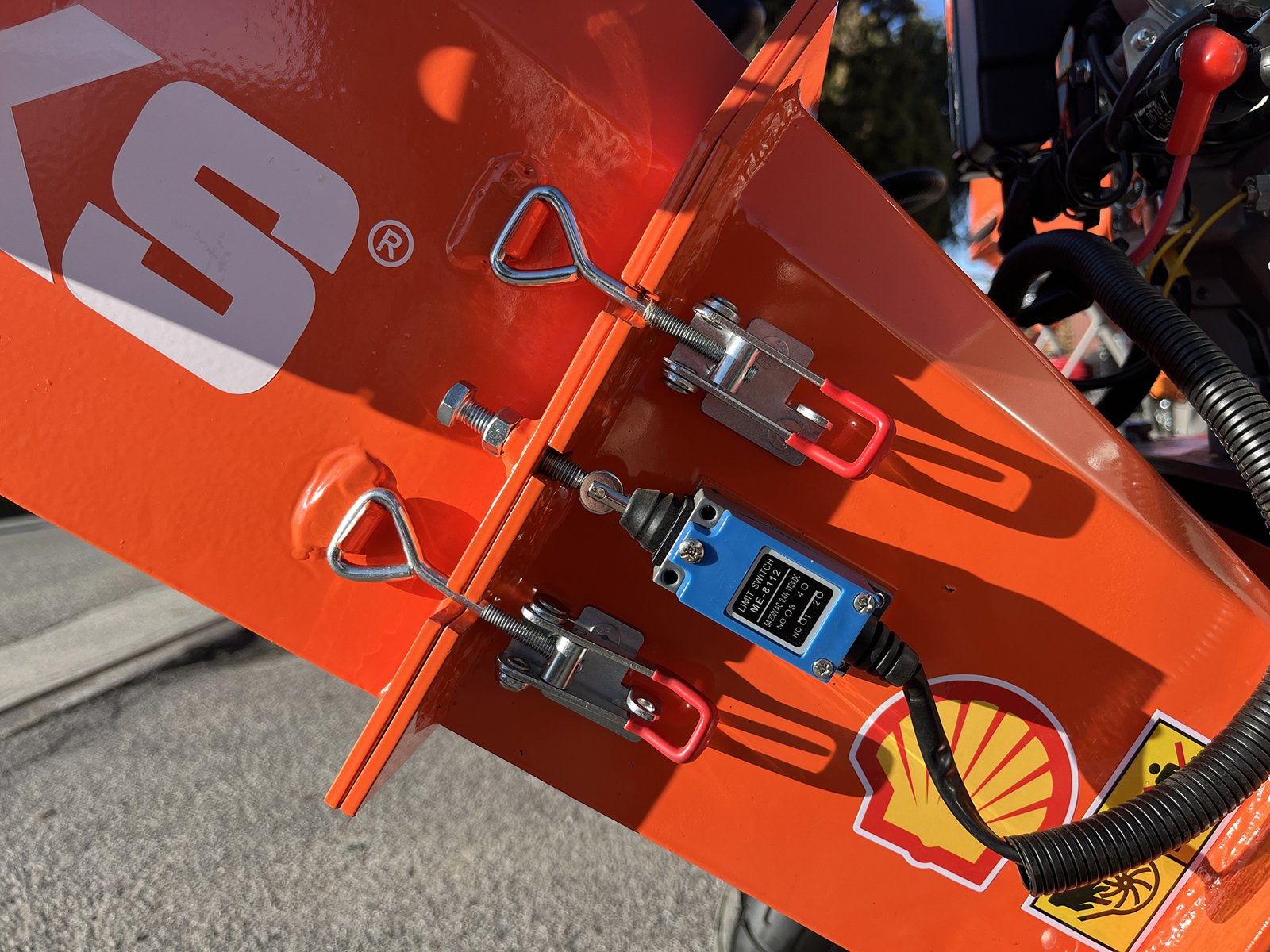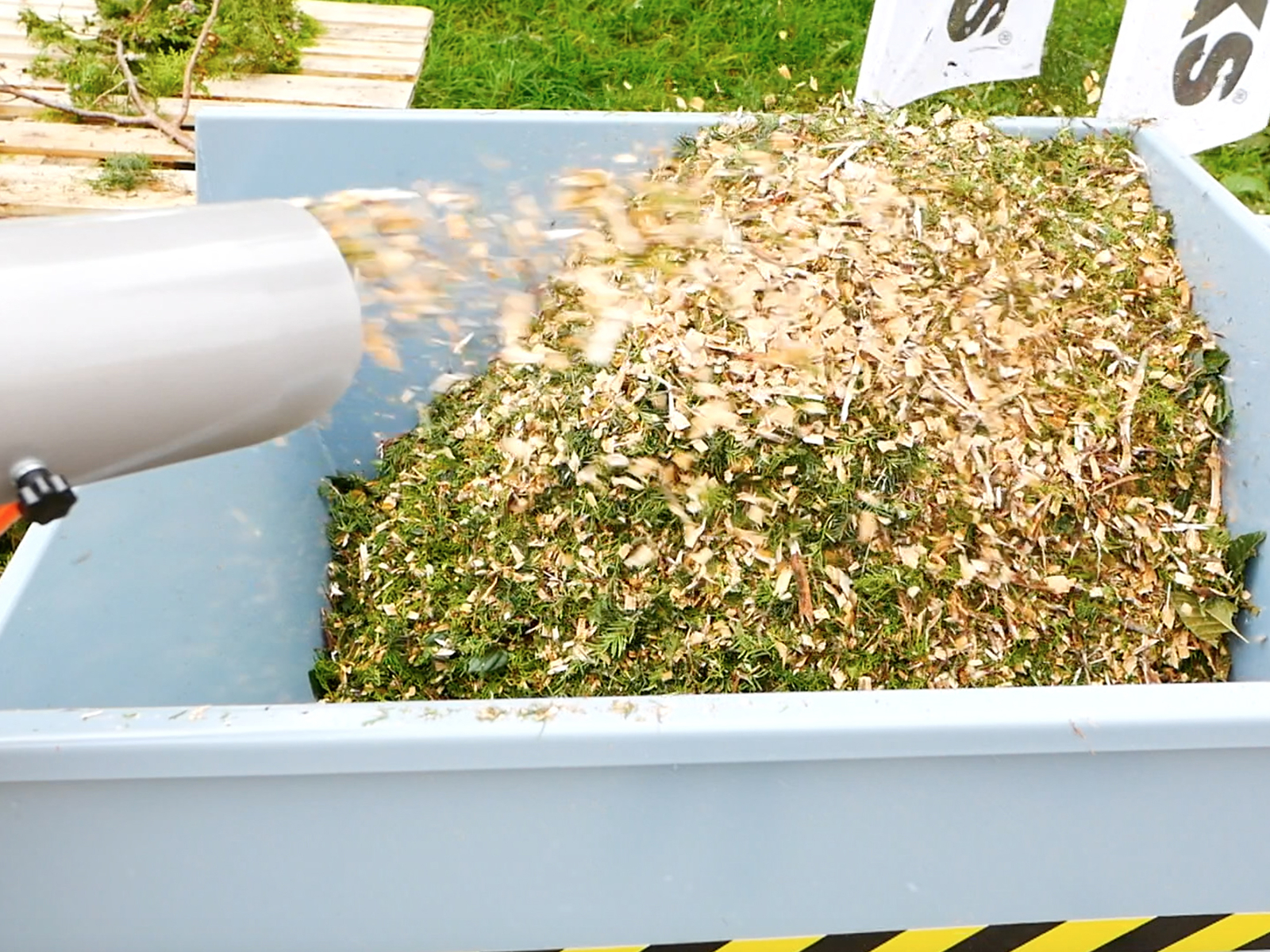 Reinforced discharge chute made of heavy-gauge tubular steel. The 165 cm discharge height allows material to be discharged directly into compost containers, bins or onto a van bed. The discharge direction can be adjusted or the chute removed in seconds using butterfly clamps.