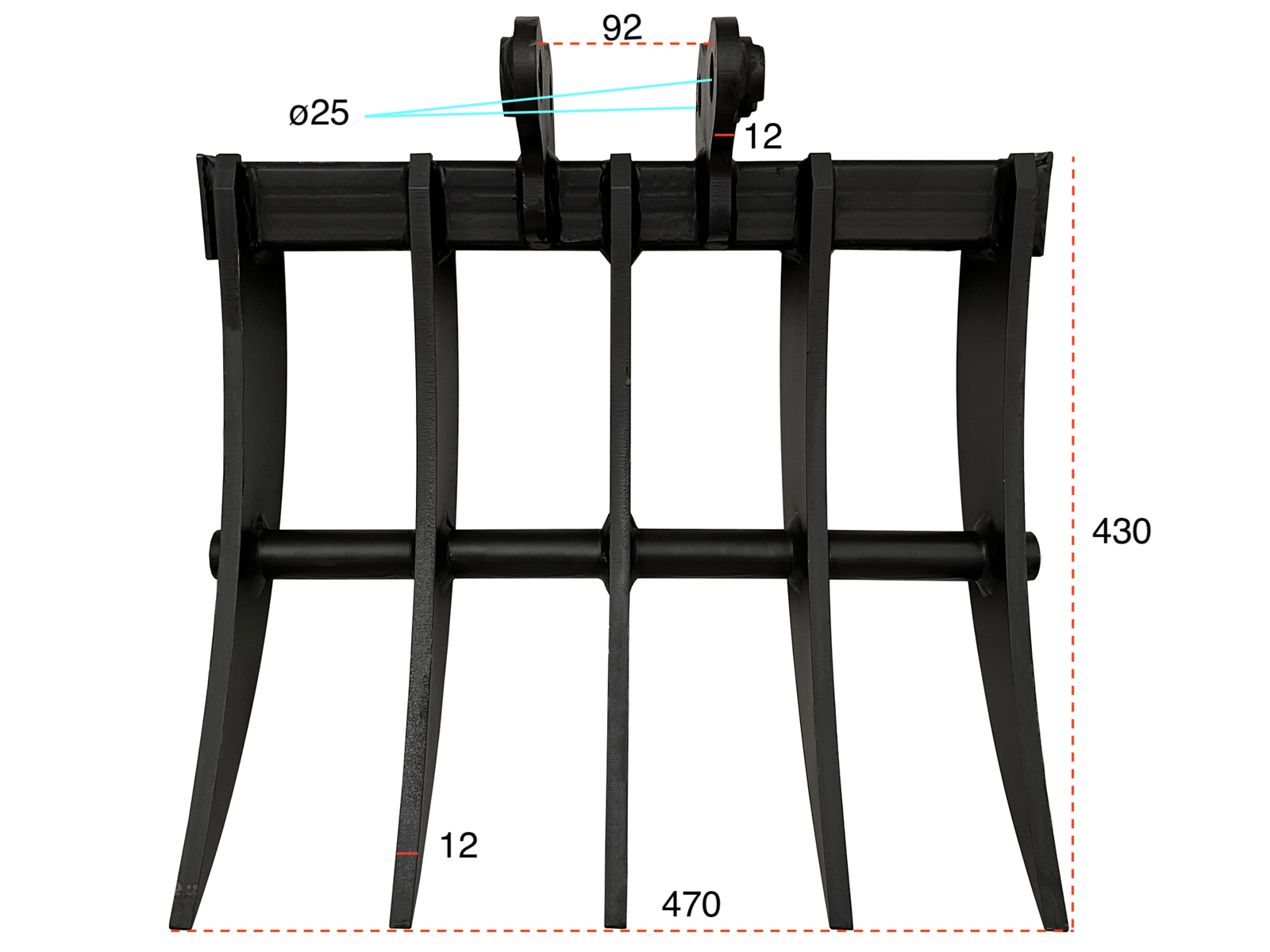 DELEKS® Rake 60cm, Multiripper bucket for miniexcavator M80/M90/M100/M120.