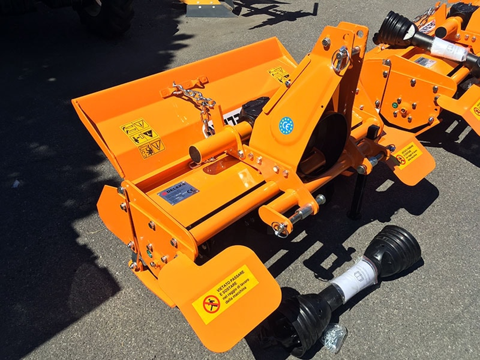 Light rotavator tiller with sideshift DELEKS® for tractors like Kubota, Iseki, New Holland, John Deere - PTO shaft included.