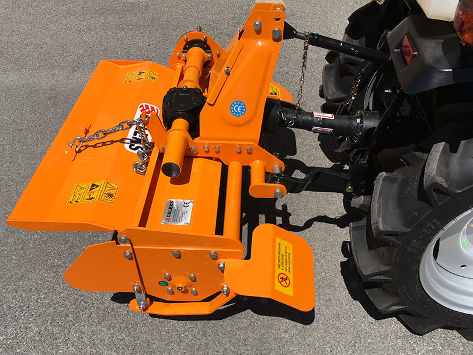 CLOSELight rotavator tiller with sideshift DELEKS® for tractors like Kubota, Iseki, New Holland, John Deere - PTO shaft included.