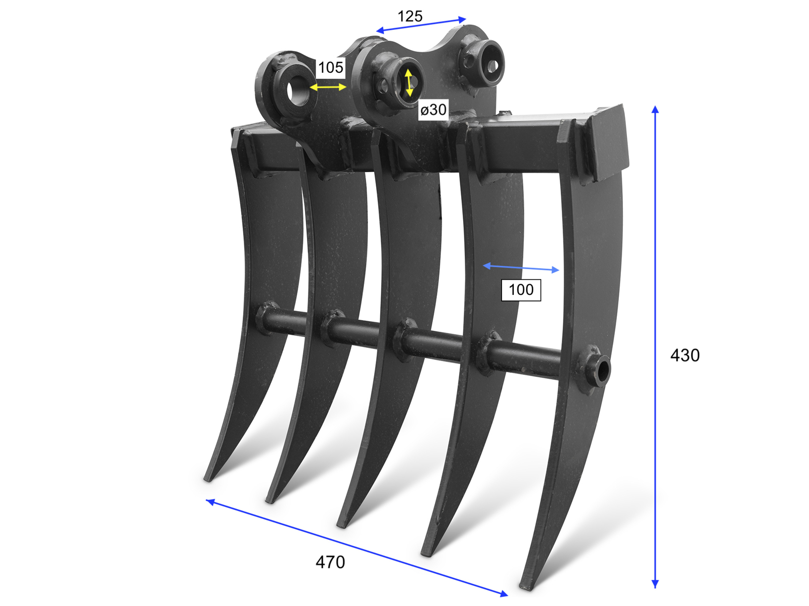 CLOSEDELEKS® Rake, Multiripper bucket for miniexcavator M180.