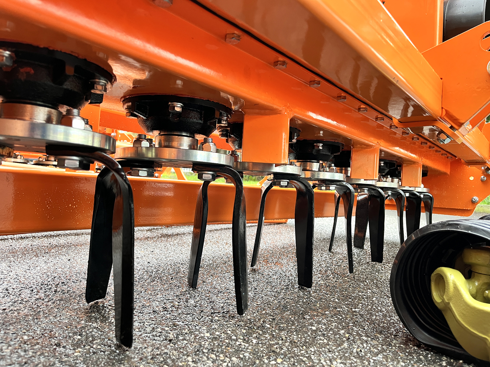 The KR model harrow has been designed for small farms and for tilling soil in specialized cultivations such as market gardening and viticulture. The special attention given to its overall dimensions and lightness makes it an ideal implement for low HP tractors. The special design of the blades allows the soil to be broken up with considerable economy in tractor power use.
